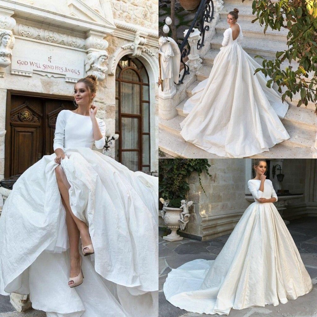 This simple satin wedding gown also features an attached bow in the back for extra romancing! It might be easier than you think! Floraguopei1991@yahoo.com if you have any questions, i can custom made color and size for everyone! The dress is available in ivory or white colours. Classic satin simple wedding dress plus size wedding dress off sloulder strap unique ivory white blush boho modern classic elegant bohemian. Dany mizrachi 2018 wedding dresses | wedding inspirasi. You can either wear it as a strapless gown, or you can put the bolero on and if lace is not exactly your thing and you just want plain satin, then consider something like this gown. No matter if you want tulle, lace, satin or silk you can be sure to find a wedding dress for every taste. Designed and handmade in europe this dress can be sewn custom to your measurements and has other customizable options. The ball gown can showcase numerous various fabric. Simple satin wedding dresses are here to stay in 2021. How do we know this? Lacy, tight fitting wedding dress with sleeves.